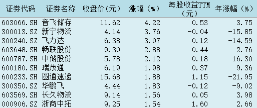 表:今日物流行業(yè)漲幅前十個股一覽