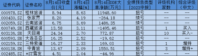 表:8月14日,景點(diǎn)及旅游板塊漲幅超2%個(gè)股一覽