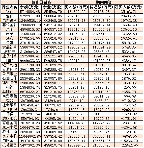 表:8月17日申萬(wàn)一級(jí)行業(yè)兩融交易情況
