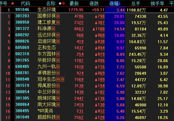 具體看,截至8月18日上午收盤(pán),生態(tài)環(huán)境板塊漲幅居首,達(dá)3.44%。其中,國(guó)泰環(huán)保、建工修復(fù)等概念股20CM漲停,遠(yuǎn)達(dá)環(huán)保、啟迪環(huán)境、正和生態(tài)等個(gè)股紛紛漲停。