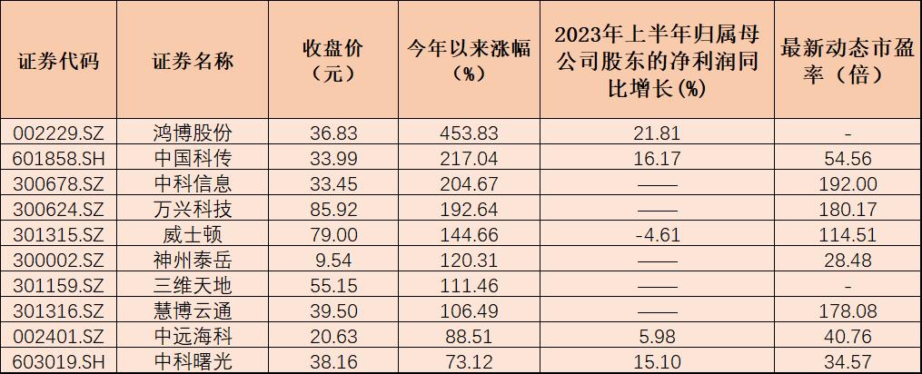 表:今年以來漲幅居前十的數(shù)字經(jīng)濟(jì)概念股一覽