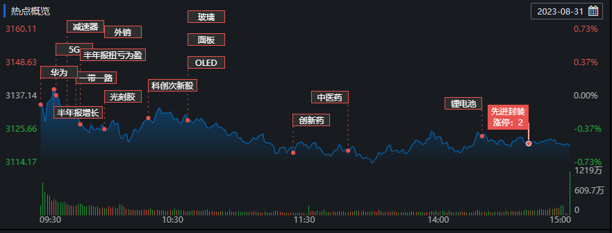 周四(8月31日),A股三大指數(shù)震蕩整理,截至收盤(pán),上證指數(shù)跌0.55%,報(bào)3119.88點(diǎn);深證成指跌0.61%,報(bào)10418.21點(diǎn);創(chuàng)業(yè)板指跌0.69%,報(bào)2102.58點(diǎn)。滬深兩市合計(jì)成交額8292億元;北向資金凈賣出42.97億元??傮w來(lái)看,A股個(gè)股跌多漲少,超3200只個(gè)股下跌,近1800只個(gè)股實(shí)現(xiàn)上漲,其中有38只個(gè)股以漲停價(jià)報(bào)收。
