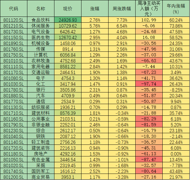 表:本周申萬(wàn)一級(jí)行業(yè)市場(chǎng)表現(xiàn)一覽