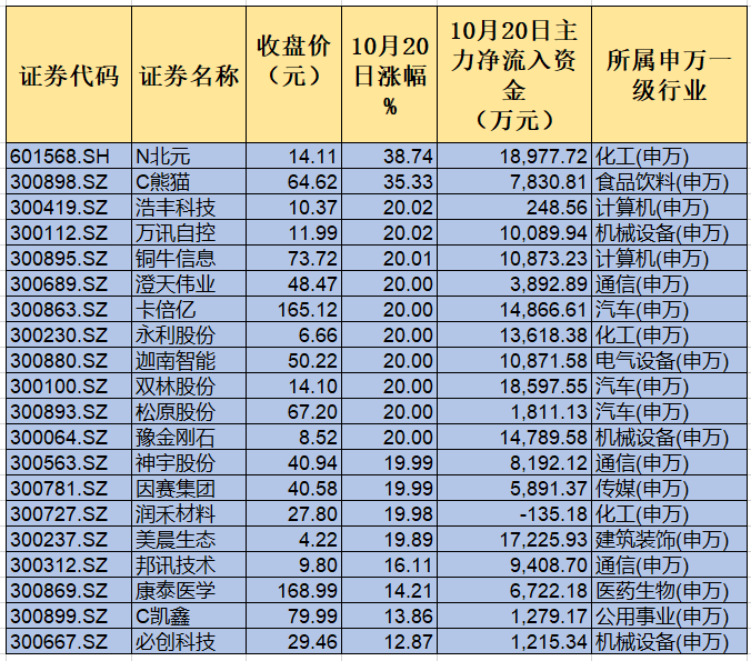 10月20日,A股先抑后揚(yáng),上證指數(shù)盤(pán)中一度跌破3300點(diǎn),午后逐步回升,截至收盤(pán),指數(shù)全線上漲,上證指數(shù)漲0.46%,報(bào)收3328點(diǎn),深成指漲1.36%,報(bào)收13603點(diǎn),創(chuàng)業(yè)板指漲1.89%,報(bào)收2740點(diǎn)。從成交金額上來(lái)看,兩市合計(jì)成交6674億元,較上一日有所下降。
