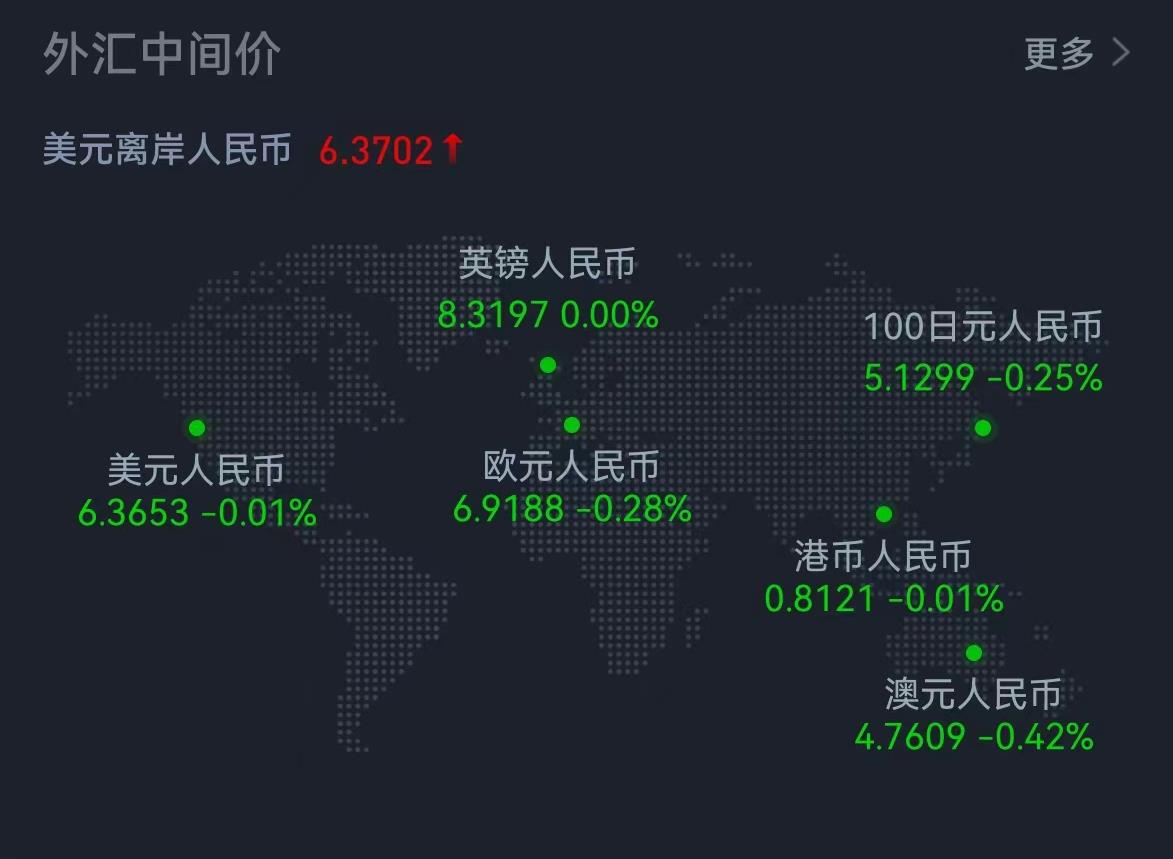 周五人民幣兌美元中間價(jià)報(bào)6.3653,調(diào)升6個(gè)基點(diǎn),本周累計(jì)調(diào)貶144個(gè)基點(diǎn)。在岸人民幣兌美元16:30收盤報(bào)6.3637,較上一交易日跌3個(gè)基點(diǎn),本周累跌17個(gè)基點(diǎn)。