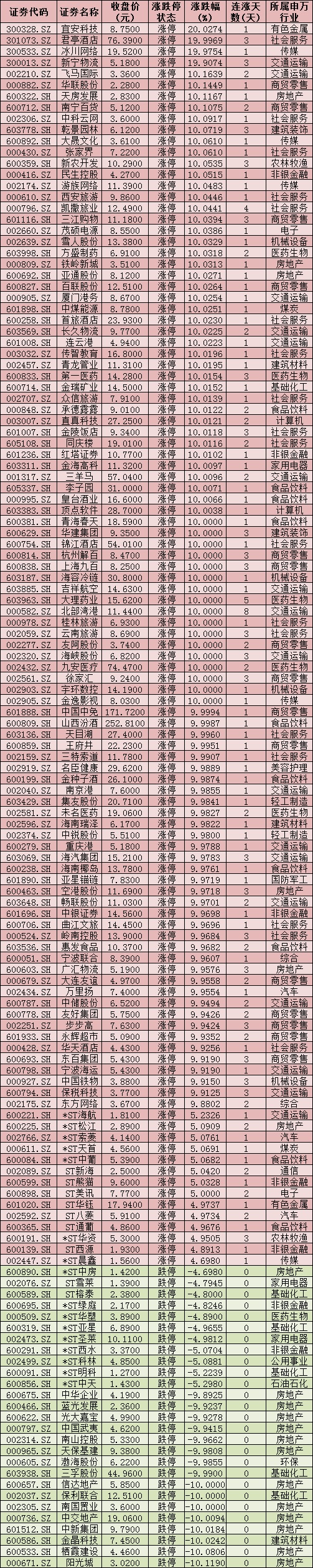 周二,住宿餐飲板塊和旅游酒店板塊聯(lián)袂爆發(fā),截至收盤(pán)漲幅分別達(dá)9.83%和7.09%。具體來(lái)看,有16只旅游股直沖漲停,君亭酒店20CM漲停。