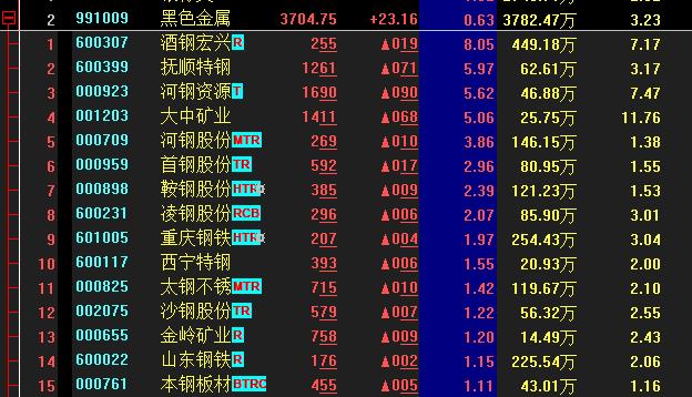 熱點二:黑色金屬板塊活躍 酒鋼宏興漲逾8%