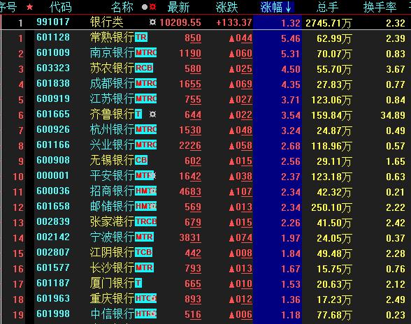 4月15日,銀行板塊發(fā)力,逆市上揚,截至收盤,板塊漲幅居前1.32%,常熟銀行、南京銀行漲幅均超5%。