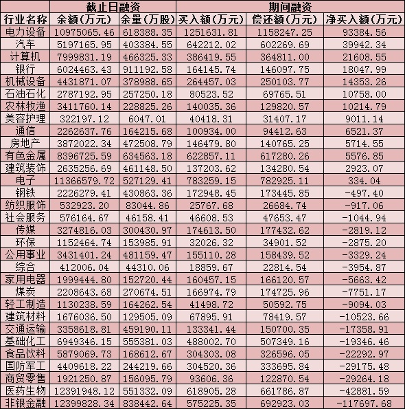 表:6月20日申萬(wàn)一級(jí)行業(yè)兩融交易情況: