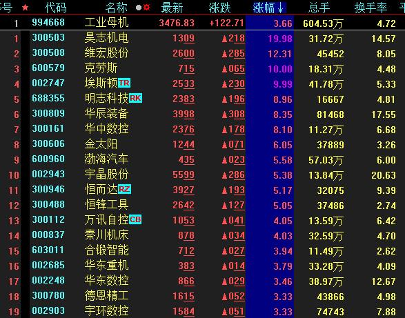 具體來看,6月28日上午,工業(yè)母機板塊異動拉升,漲幅達3.66%,其中,昊志機電20cm漲停,克勞斯、埃斯頓等個股也聯(lián)袂漲停。