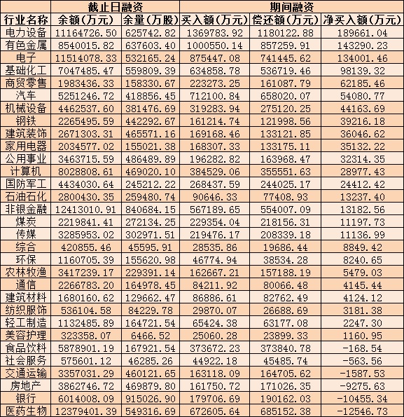 表:6月27日申萬一級行業(yè)兩融交易情況: