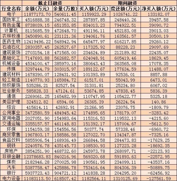 表:6月29日申萬一級(jí)行業(yè)兩融交易情況: