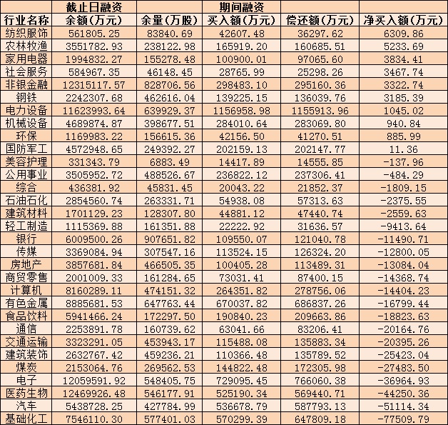 表:7月8日申萬一級(jí)行業(yè)兩融交易情況: