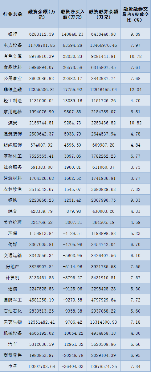 表:7月14日申萬(wàn)一級(jí)行業(yè)兩融交易情況: