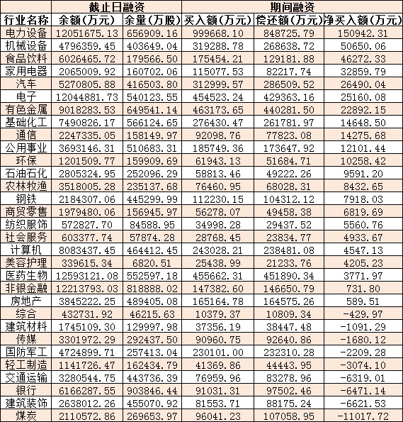 表:7月27日申萬一級(jí)行業(yè)兩融交易情況: