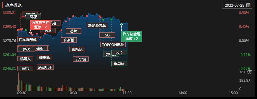 熱點(diǎn)板塊方面,截至7月28日上午收盤,電子設(shè)備、儀器儀表等板塊漲幅居前,倉儲(chǔ)物流、公共設(shè)施、房地產(chǎn)等板塊跌幅居前。