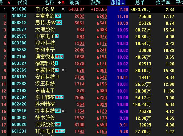 具體來看,截至7月28日上午收盤,電子設(shè)備板塊漲幅居首,達(dá)2.4%,其中,包括大港股份、中京電子、駿亞科技、協(xié)和電子等13只概念股集體漲停。