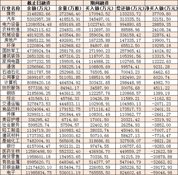 表:7月28日申萬(wàn)一級(jí)行業(yè)兩融交易情況: