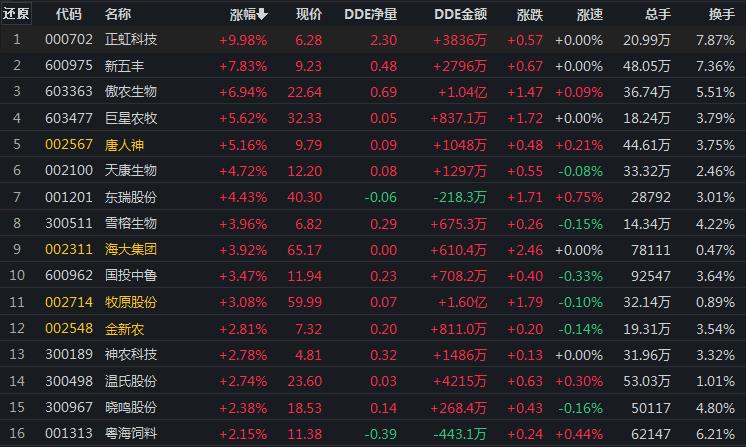 從申萬(wàn)一級(jí)行業(yè)來(lái)看,截至7月29日上午收盤(pán),農(nóng)林牧漁行業(yè)漲幅居首,達(dá)1.8%,其中,正虹科技漲停。