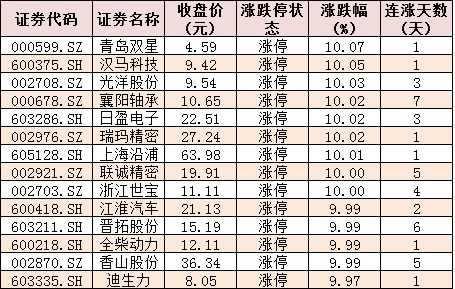 表:今日14只漲停的汽車股表現(xiàn)情況: