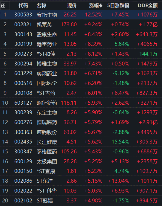 8月4日,申萬一級行業(yè)中醫(yī)藥生物領(lǐng)漲,漲幅達(dá)2.05%。行業(yè)351只交易中的個(gè)股,有324只上漲,其中,有4只個(gè)股漲停,19只個(gè)股漲幅超5%。