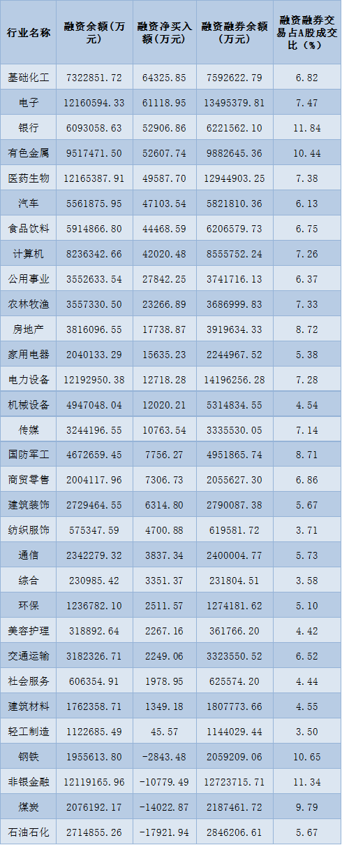 表:8月15日申萬一級行業(yè)兩融交易情況:
