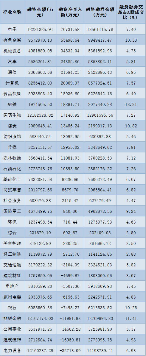 表:8月16日申萬一級(jí)行業(yè)兩融交易情況: