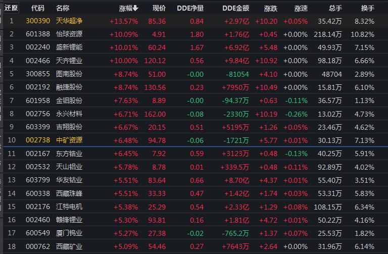 8月22日,有色金屬行業(yè)漲幅居首達(dá)3.72%。其中,怡球資源、盛新鋰能、天齊鋰業(yè)等3只概念股集體漲停。