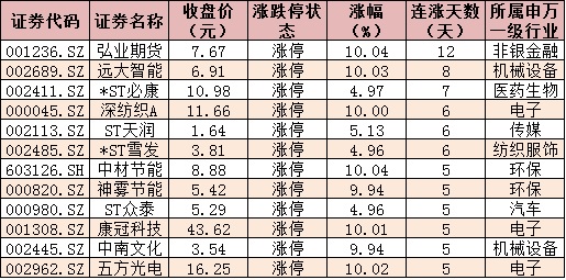 表:今日漲停且連漲5日以上的個(gè)股情況: