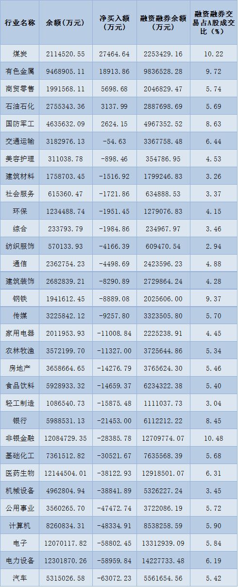 表:8月26日申萬一級(jí)行業(yè)兩融交易情況: