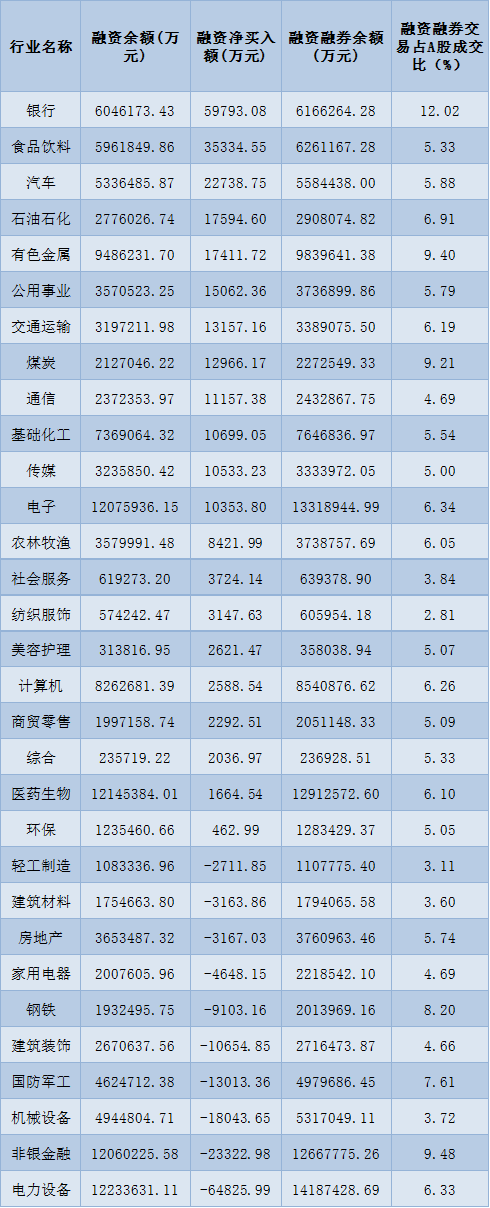 表:8月29日申萬一級行業(yè)兩融交易情況: