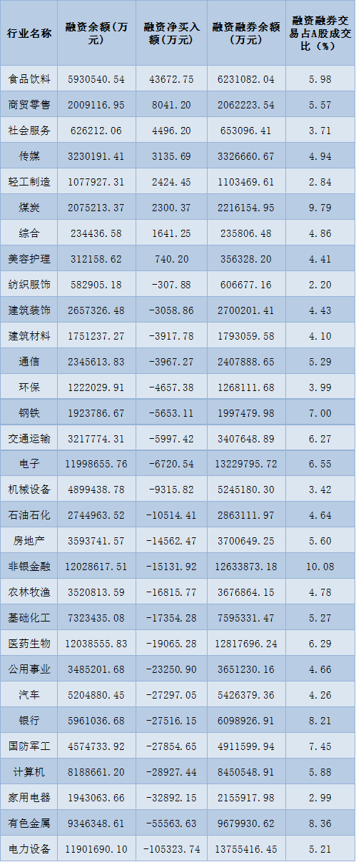 表:9月1日申萬(wàn)一級(jí)行業(yè)兩融交易情況: