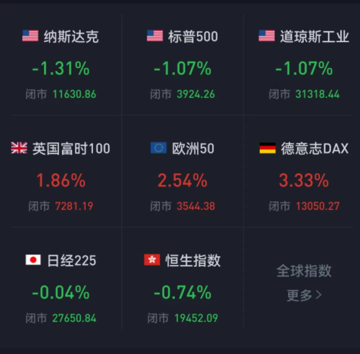 本周,德國DAX指數(shù)漲0.61%,法國CAC40指數(shù)跌1.7%,英國富時100指數(shù)跌1.97%。