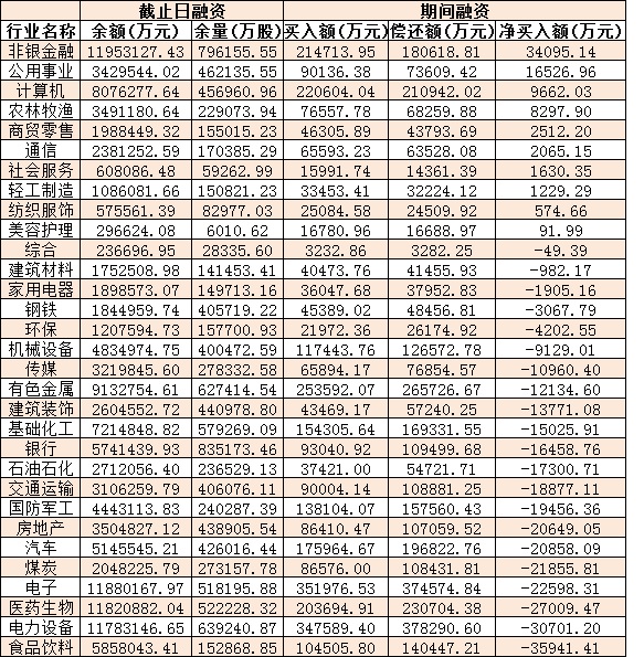 表:9月19日申萬(wàn)一級(jí)行業(yè)兩融交易情況: