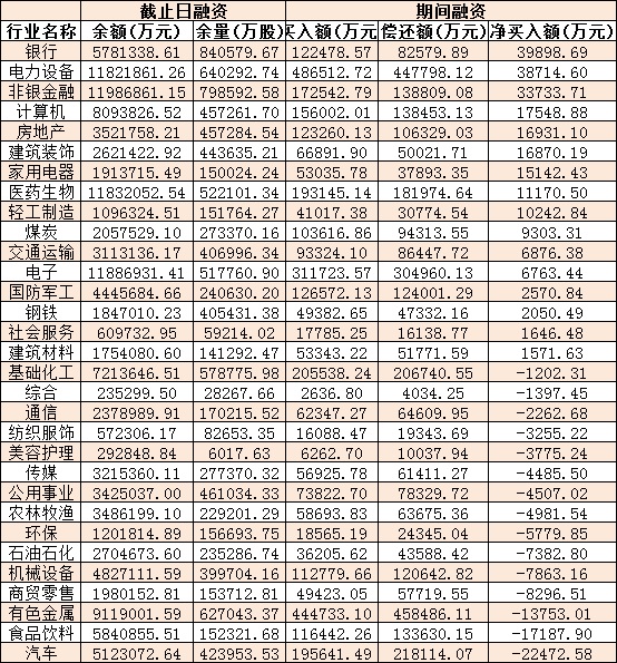 表:9月20日申萬(wàn)一級(jí)行業(yè)兩融交易情況:
