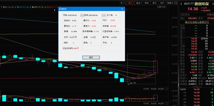 9月26日,德創(chuàng)環(huán)保漲10.04%,報14.36元。該股自9月19日以來,截至9月26日已連續(xù)6個交易日上漲,累計(jì)漲幅達(dá)19.47%,今日封漲停板。該股最新A股總市值達(dá)29.81億元,A股流通市值29.01億元。