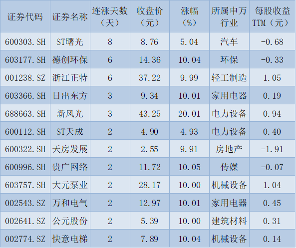 表:連續(xù)上漲2天且今日收盤漲停股一覽
