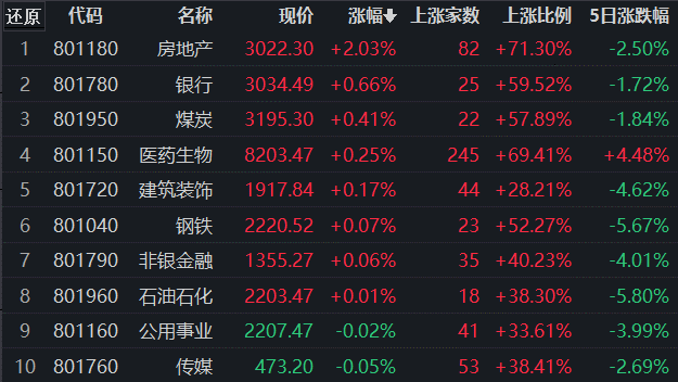 房地產(chǎn)行業(yè)領(lǐng)漲