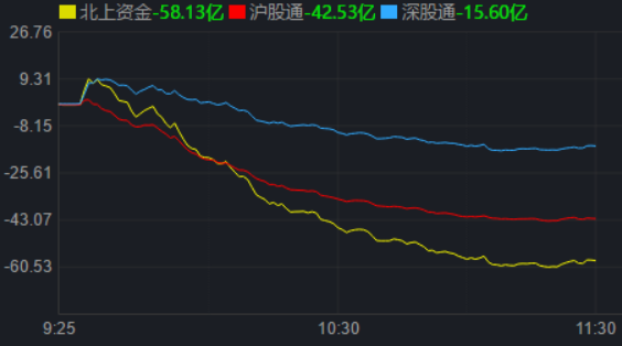 從資金面來看,10月13日上午,北向資金凈賣出金額達(dá)58.13億元。