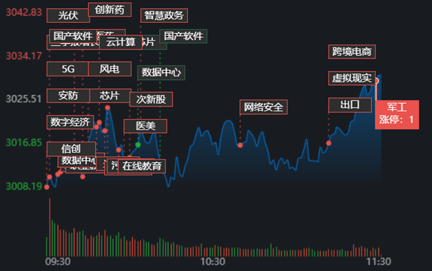 同花順行業(yè)方面,截至10月13日11:30,76類行業(yè)中67類上漲,占比88.16%,其中,計算機應(yīng)用行業(yè)漲幅達(dá)4.29%,排名首位。下跌的行業(yè)中,煤炭開采加工居首,跌幅達(dá)3.01%。