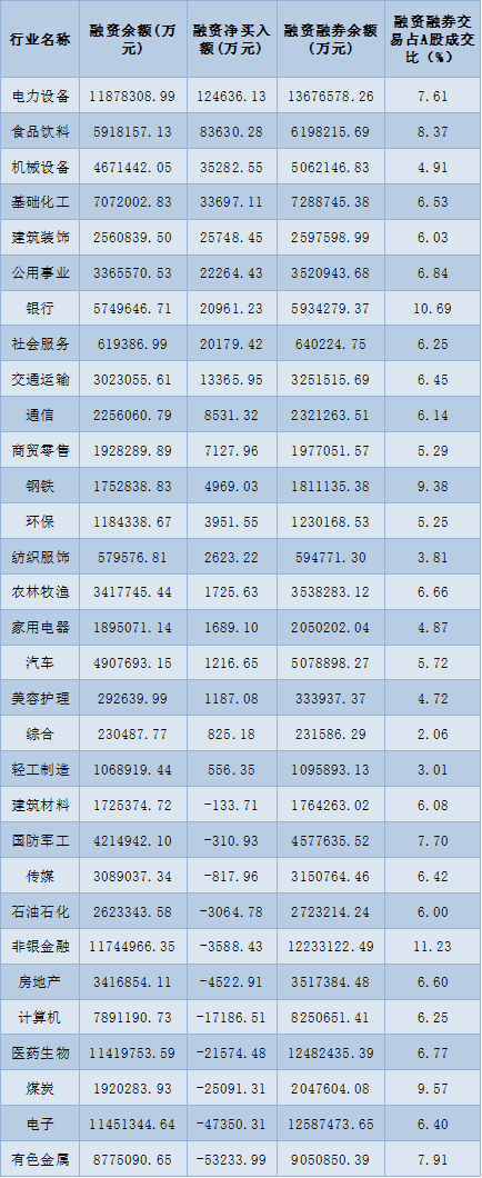 表:10月24日申萬一級行業(yè)兩融交易情況: