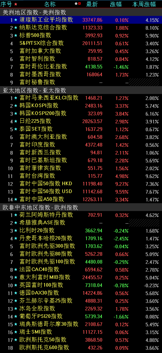 平安證券表示,全球股市明顯回暖,美成長股領(lǐng)跑全球。美股三大指數(shù)本周均明顯反彈。11月10日美國CPI數(shù)據(jù)公布后,超預期回落的10月CPI同比數(shù)據(jù)使得市場加息預期回落,風險偏好大幅升溫,納指當日漲幅便達到7%以上,創(chuàng)下2020年4月以來最大單日漲幅。歐股同樣受到美國通脹降溫帶動的風險偏好回升影響,多數(shù)股指延續(xù)了上周的上漲趨勢。