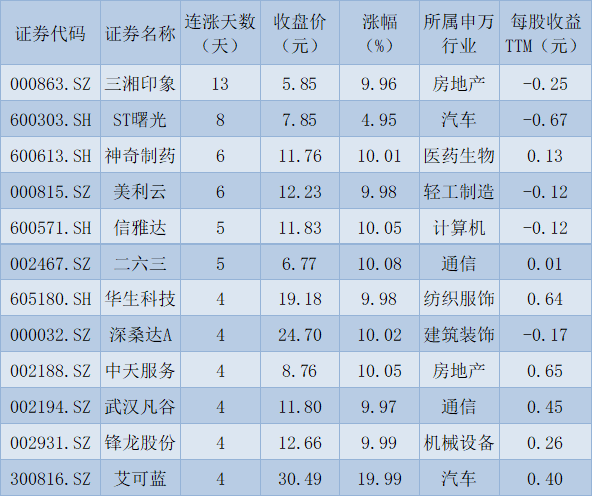 表:連續(xù)上漲4天且今日收盤(pán)漲停股一覽