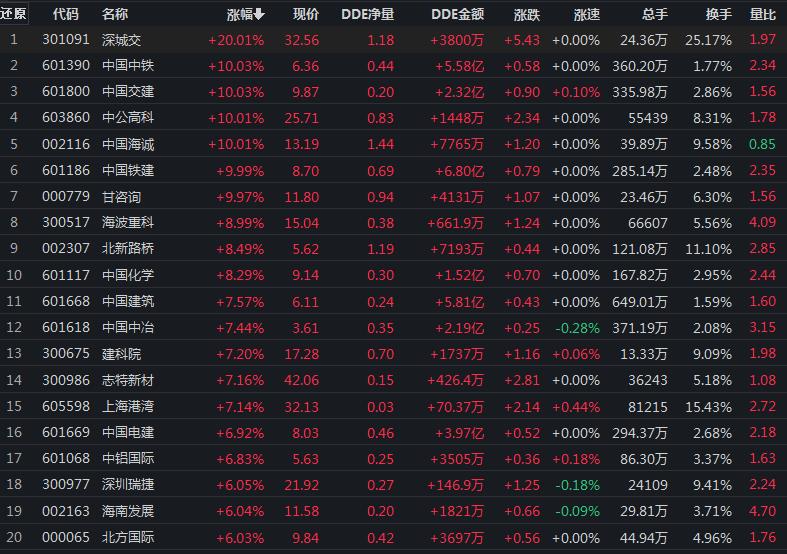 12月5日,建筑裝飾行業(yè)漲幅居首,達(dá)4.76%。其中,中國(guó)海誠(chéng)、中國(guó)交建、甘咨詢、中國(guó)鐵建、中國(guó)中鐵、中公高科、深城交等7只概念股集體漲停。