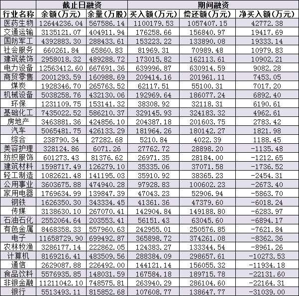 表:12月8日申萬一級行業(yè)兩融交易情況: