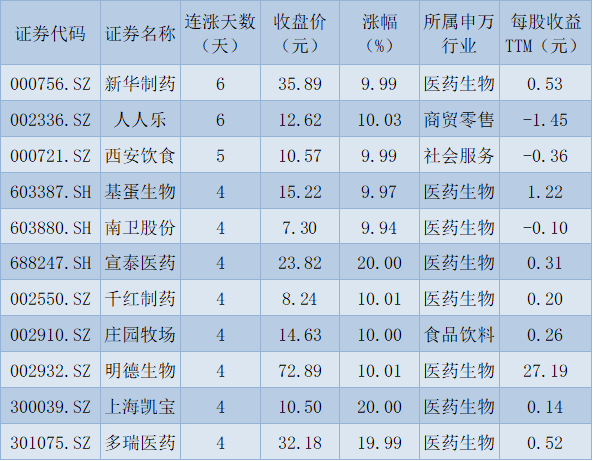 表:連續(xù)上漲4天且今日收盤漲停股一覽