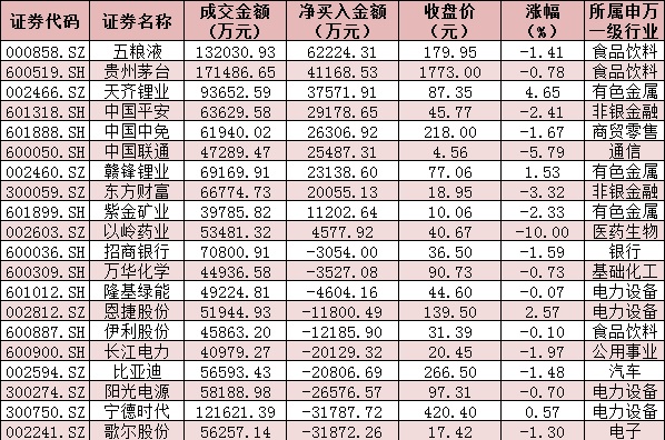 表:12月19日滬、深股通前十大成交活躍股交易情況: