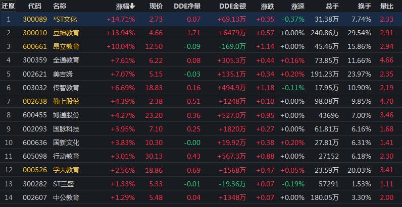 教育板塊漲3.6%