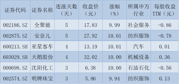 表:連續(xù)上漲3且今日收盤漲停股一覽