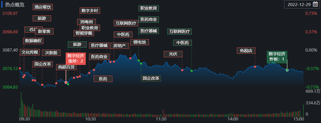 12月29日,A股三大指數(shù)低開震蕩分化,滬指圍繞60日均線運行。截至收盤,上證指數(shù)跌0.44%報3073.70點;深證成指跌0.13%報10996.41點,創(chuàng)業(yè)板指漲0.48%報2349.38點,A股合計成交額6146.20億元,較前一交易日縮減5.54%,北向資金凈賣出11.10億元??傮w上看,A股個股漲少跌多,有1576只上漲,3331只下跌。